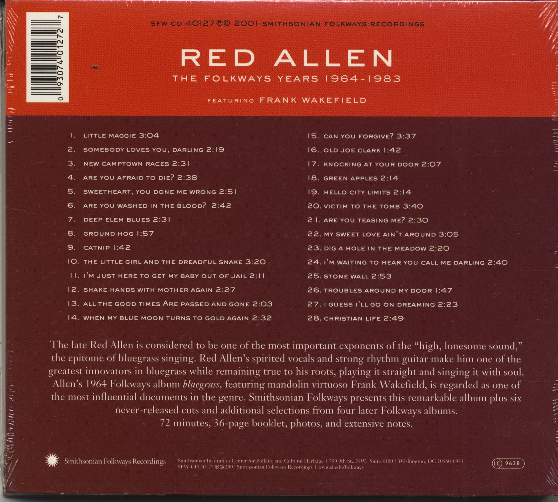 Red Allen Folkways Years 1964-1983 Featuring Frank Wakefield (CD)