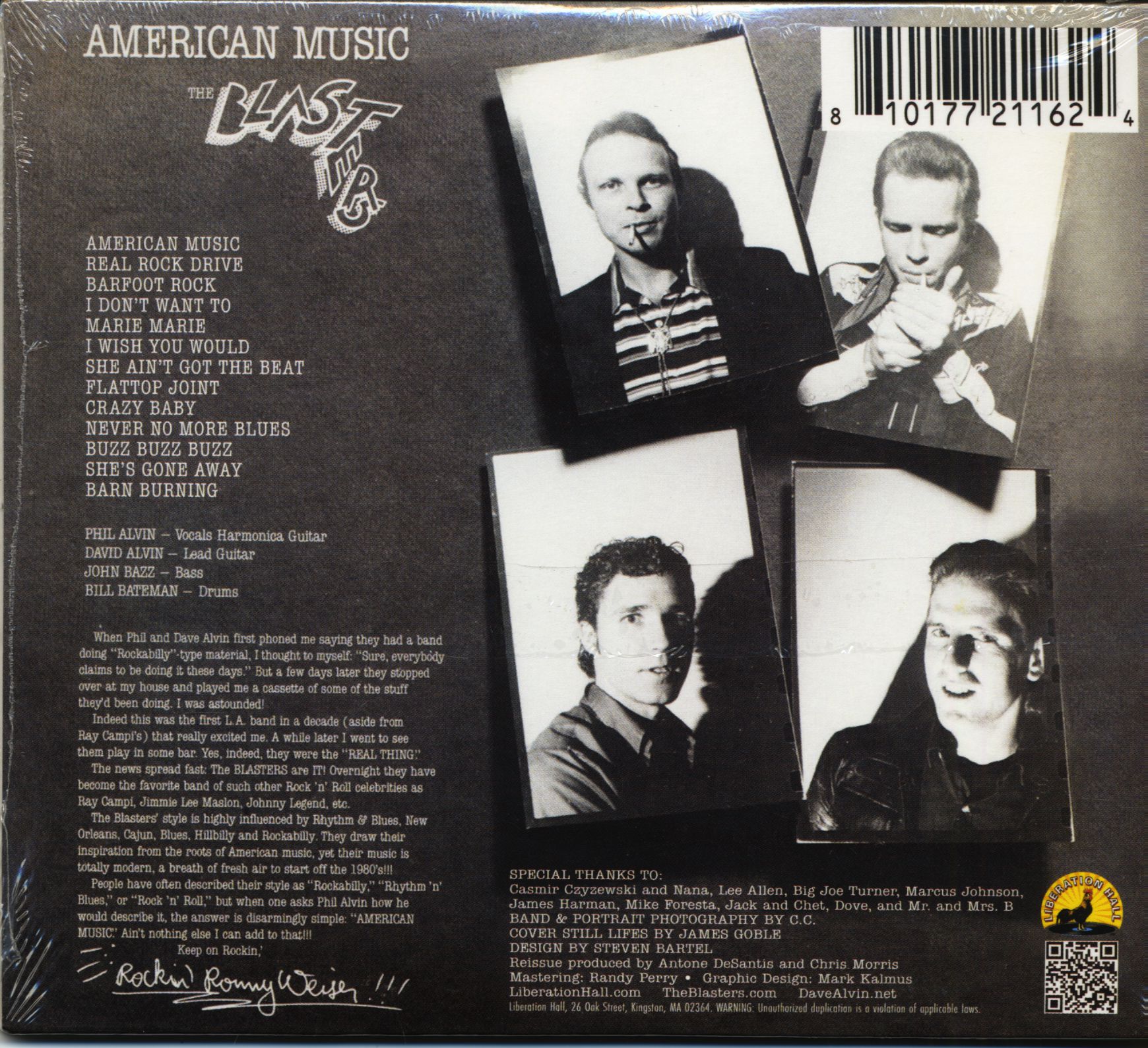 People have often described their style as "Rockabilly," "Rhythm 'n' Blues," or "Rock 'n' Roll," but when one asks Phil Alvin how he would describe it, the answer is disarmingly simple. "AMERICAN MUSIC." Ain't nothing else I can add to that!!! Keep on Rockin; — Rockin' Ronny Weiser, 1980