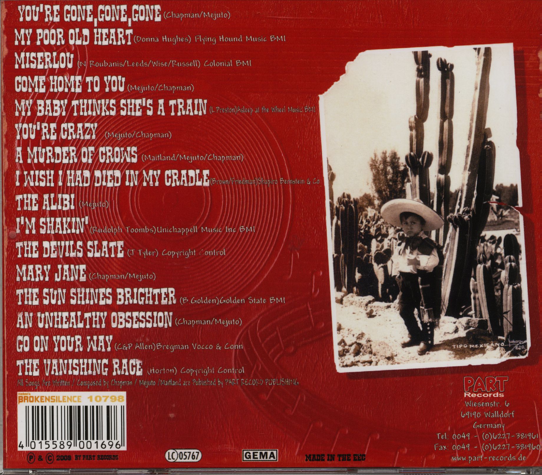 Brand new album by the British rockabilly quintet around singer and guitarist CARLOS MEJUTO. CARLOS & THE BANDIDOS are widely known in the scene for their skillful and casual rockabilly style with beautiful Western and Tex-Mex influences. On their new album, the 'elder statesmen of british rockabilly' present 16 light-footed grooving numbers, original compositions and cover songs (e.g. a charming vocal version of the world-famous surf-instro hit Miserlou by DICK DALE / PULP FICTION). With The Good, The Bad And The Bandidos, the band, which has been performing internationally for 14 years, has recorded another great album that brings the rich and diverse musical tradition of the 50s and 60s into the present day.