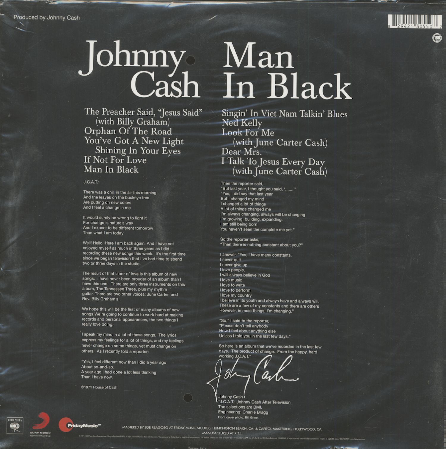 Johnny Cash Man In Black (LP, 180g Vinyl, Ltd. Deluxe Edition)