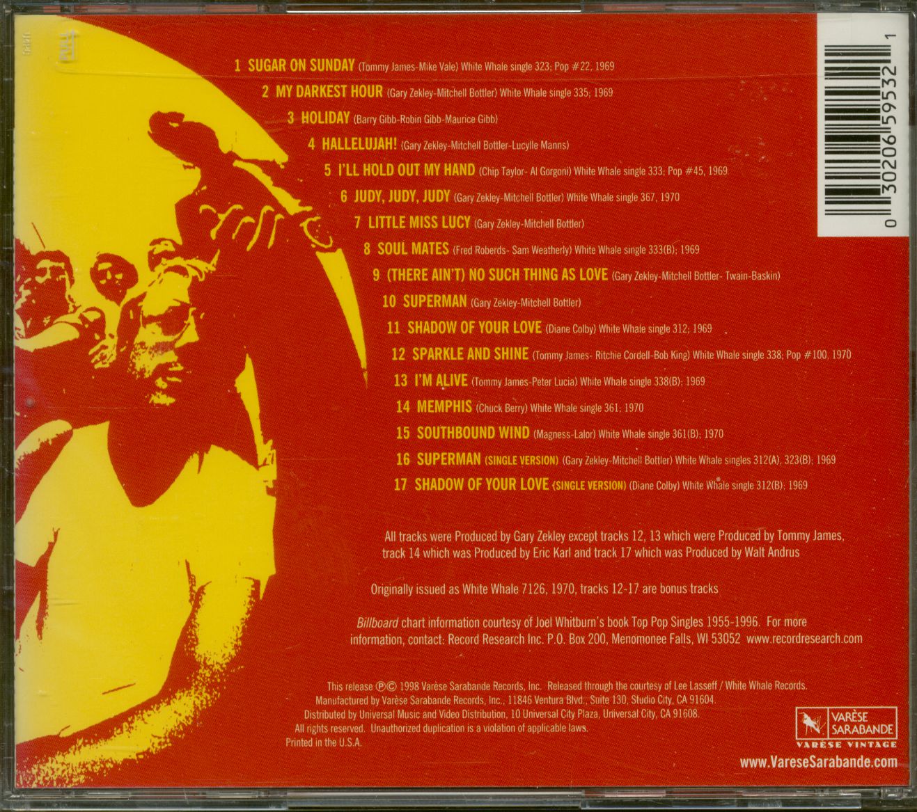 Rolling Stone magazine was there too." Zekley was quizzical about The Clique's 'rediscovery' because he knew the reality. "The group never played on the ses-sions," he says. "I had success with The Fun and Games and The Yellow Balloon, so Don Altfeld and Mickey Shapiro got me a deal with White Whale to produce The Clique. I had met The Clique and The Fun and Games on the same day. I chose to do The Fun and Games first, and then we came back and recorded The Clique."(...from the linernotes, Domenic Priore, 1998)