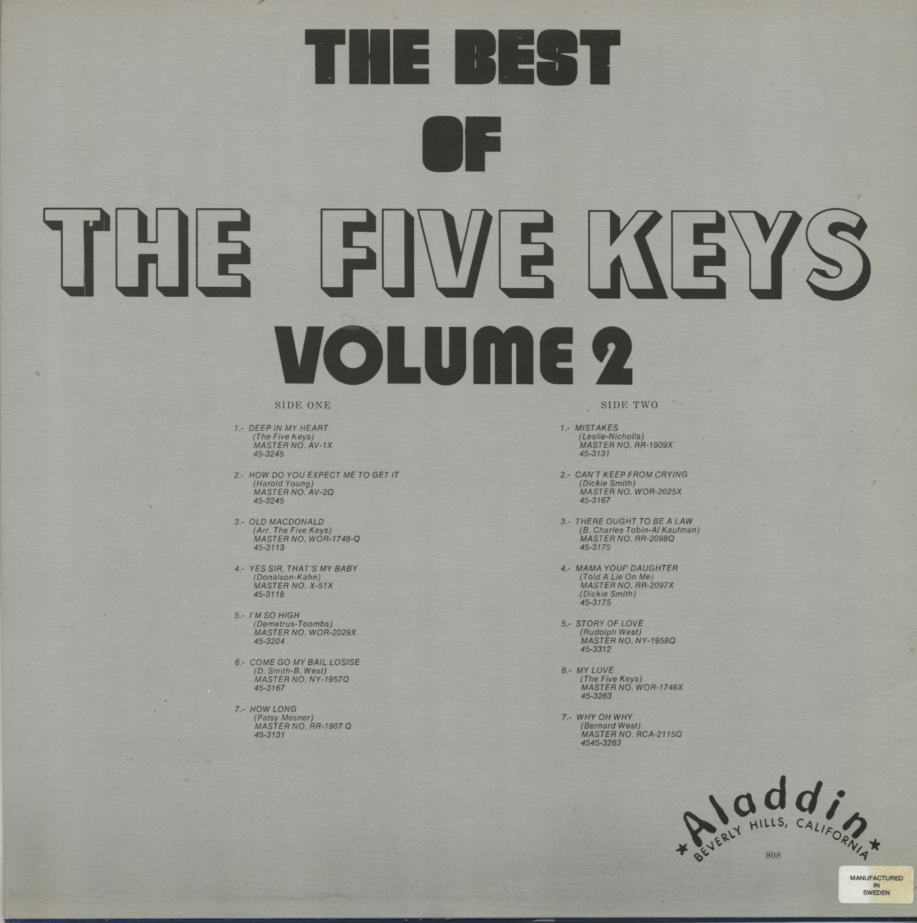 The Five Keys The Best Of The Five Keys Vol.2 (LP)
