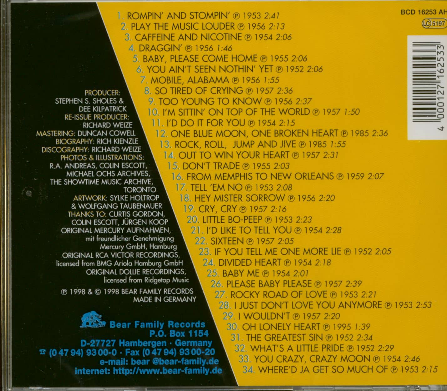The Mercury sides are justly acclaimed as some of the hottest country and rockabilly ever recorded. The 16 Mercurys include classics like Draggin', Rock Roll Jump And Jive, I'm Sittin' On Top Of The World..., and several others that once commanded a week's paycheque. Classic country fans shouldn't overlook this CD, either. Curtis Gordon epitomized that wonderful early Fifties Hank Williams-influenced country sound. As a bonus, we've added the two best Dollie recordings from the late Fifties.