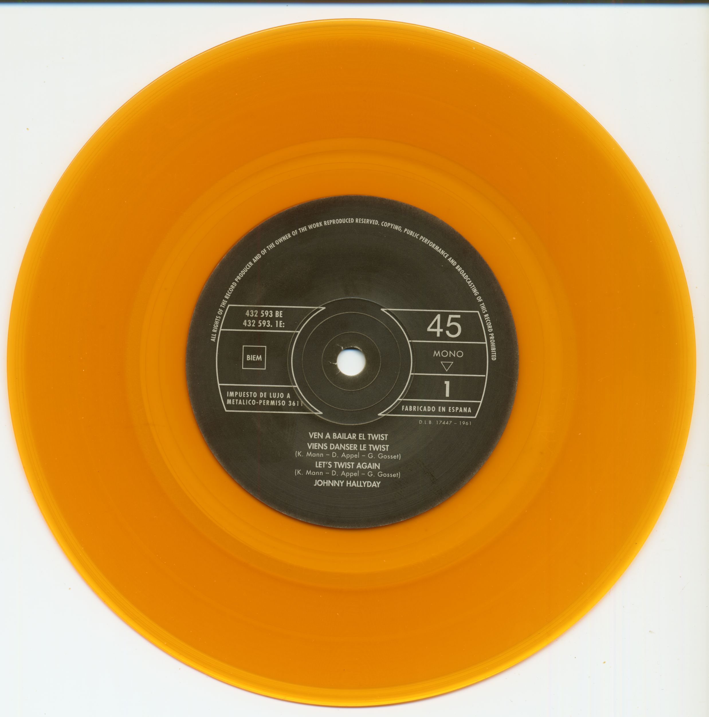 Johnny Hallyday Ven A Bailar El Twist (7inch, EP, 45rpm, PS, SC, Orange Vinyl, Ltd.)