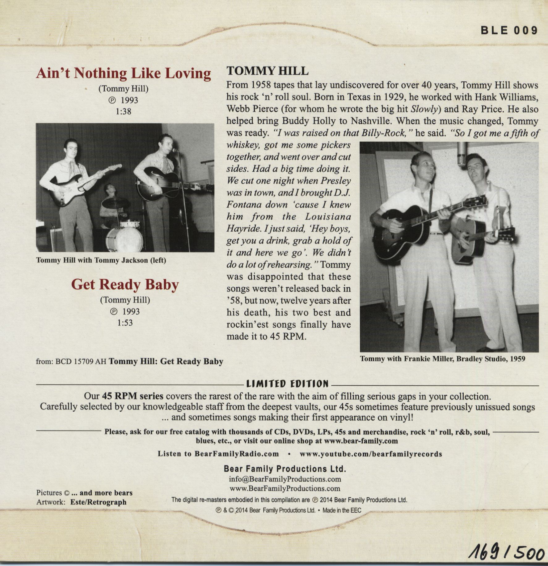 Article properties: Tommy Hill: Ain't Nothing Like Loving - Get Ready Baby (7inch, 45rpm, PS, Ltd.)