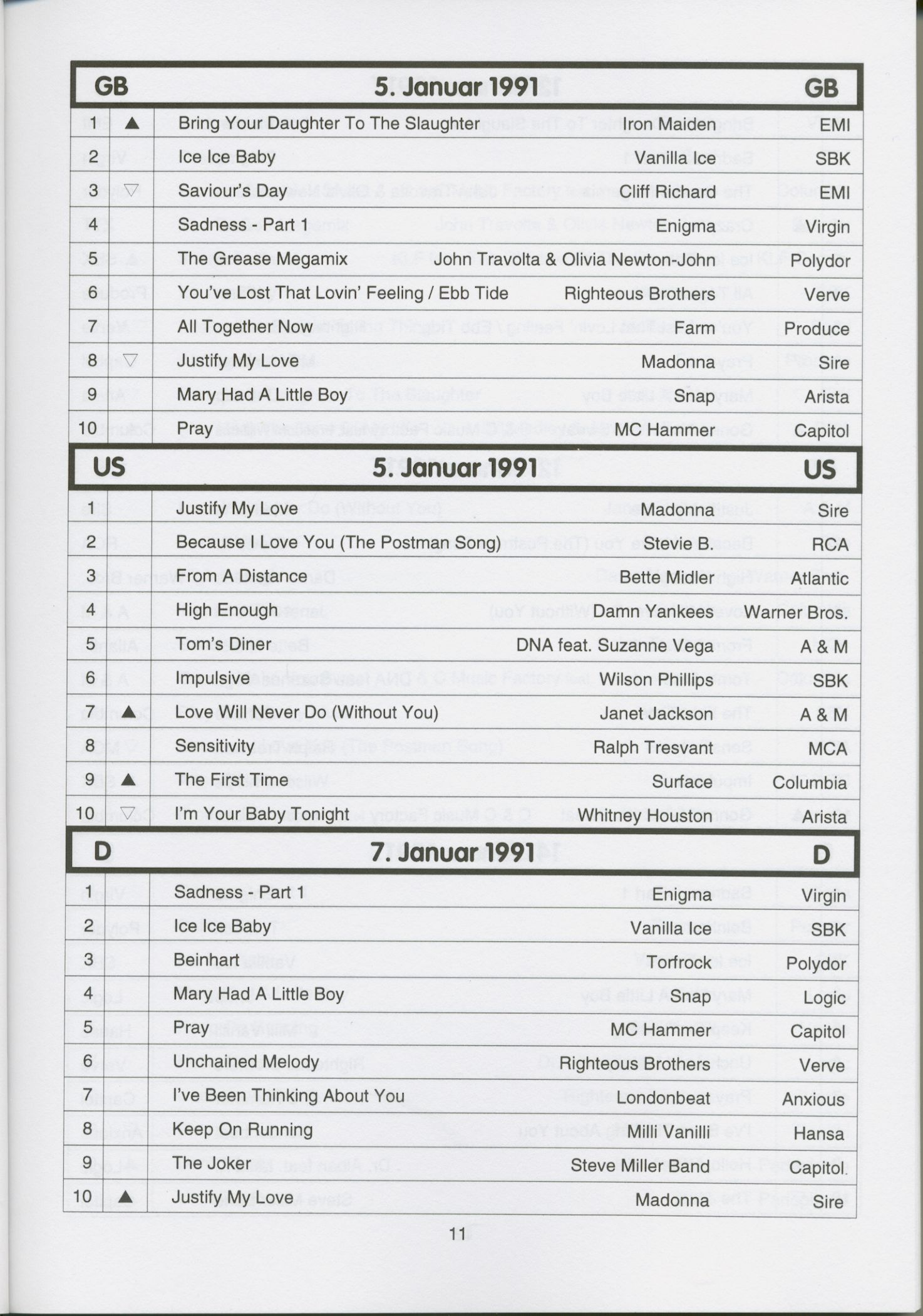 HITBILANZ BRD - GB - US LP Charts 1991-94