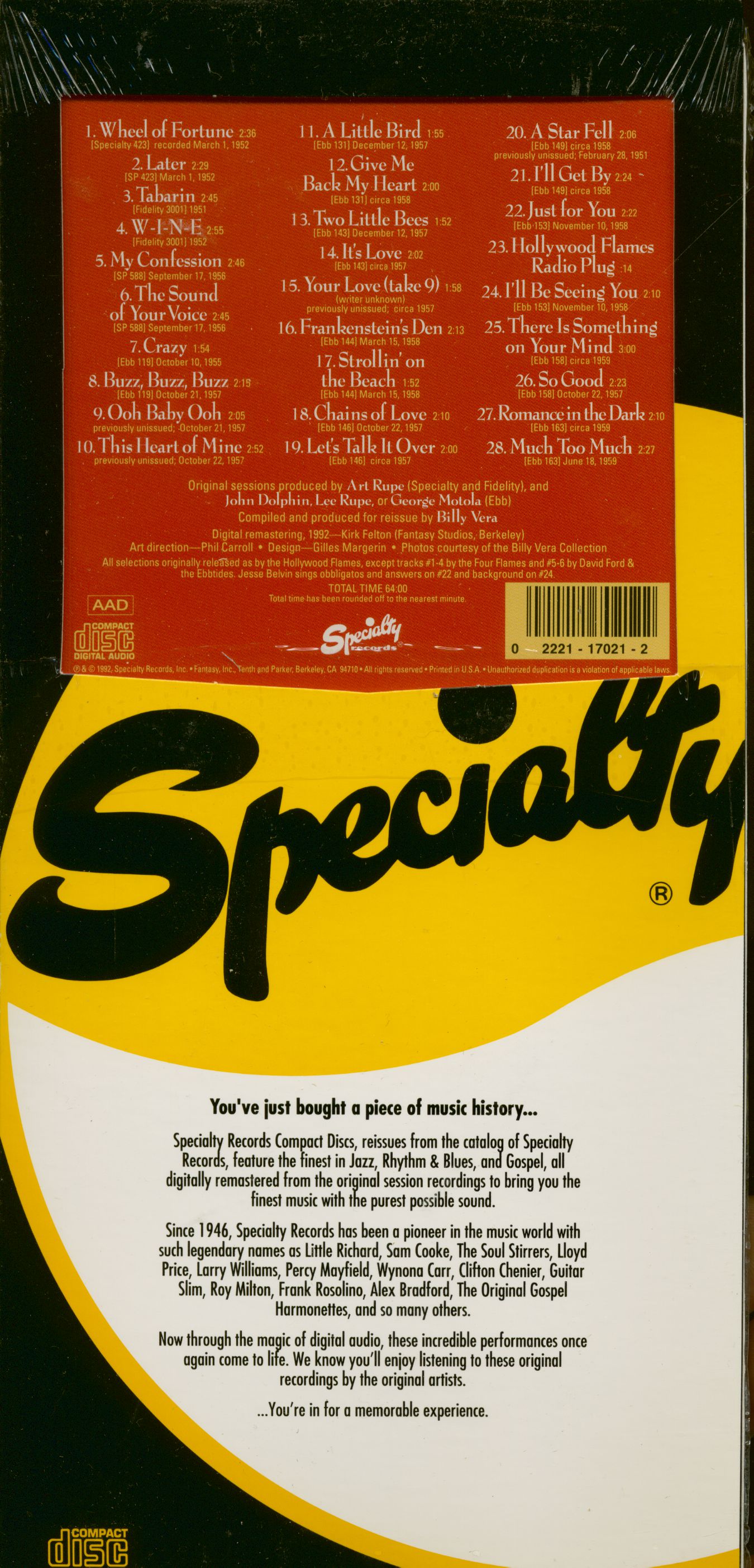 | Hollywood Flames, The - The Hollywood Flames - Specialty (CD) CD 1 | ||||