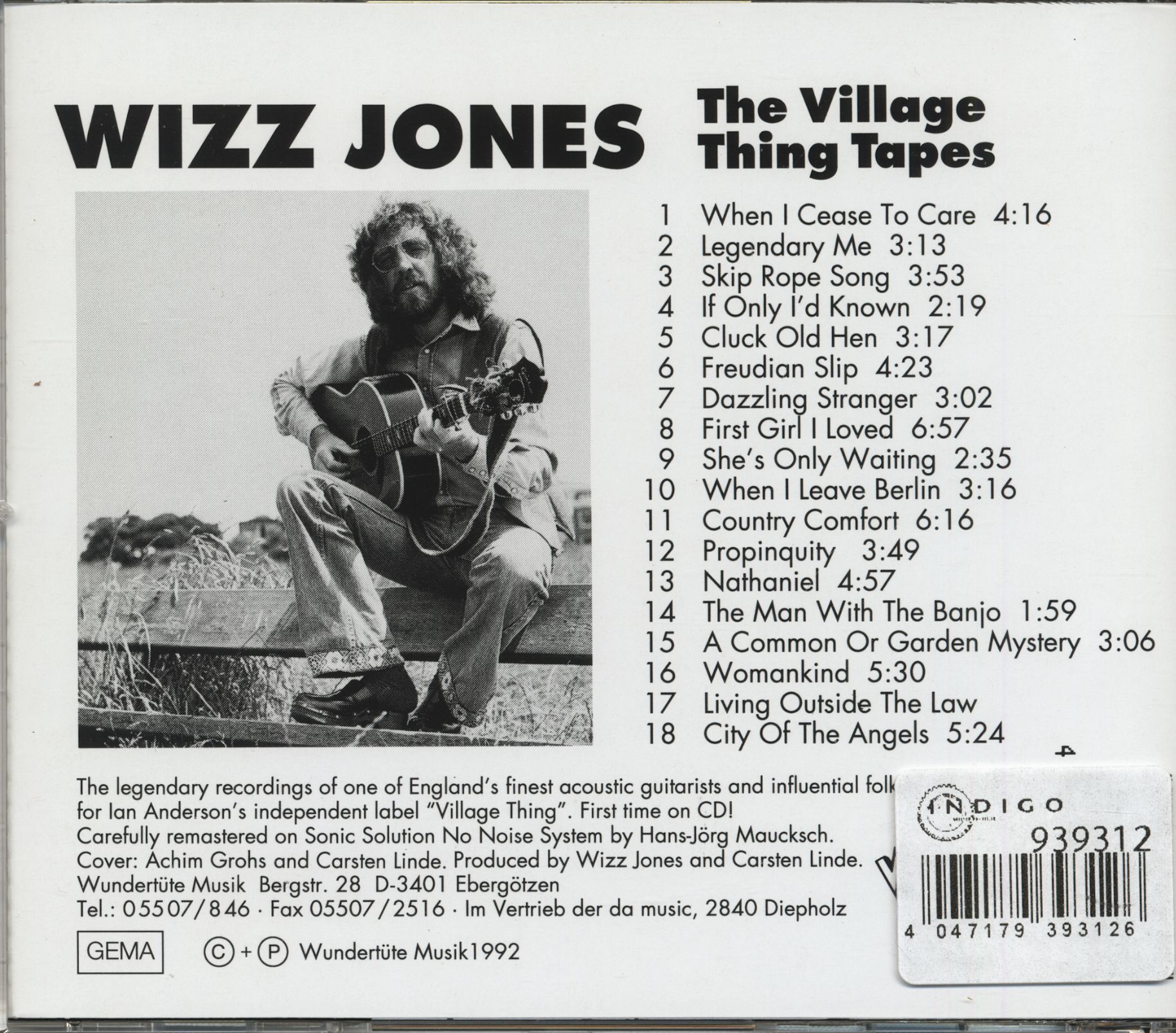 Wizz Jones is one of the protagonists of the British folk scene. The Englishman has been on the road since the end of the 1950s and his influence on many very famous colleagues cannot be overestimated. He taught Ralph McTell blues chords and fingerpicking techniques and encouraged him to write his own songs. Many of his students had far more commercial success than he himself, who is still considered an insider's tip by folk blues lovers. A gifted singer/songwriter with a velvety voice, an incredibly swinging guitarist with a highly artificial playing style, a gifted folk bluesman of the highest order who has remained true to his roots. Jones has been releasing solo albums since 1969; the song collection “Village Thing Tapes” first appeared in 1992 and contains songs from the years 1969 to 1973, plus a session recorded at Conny Plank's in 1976. It includes many original compositions, but also songs by Elton John, Mike Nesmith, Alan Turnbridge and Jesse Ballard.