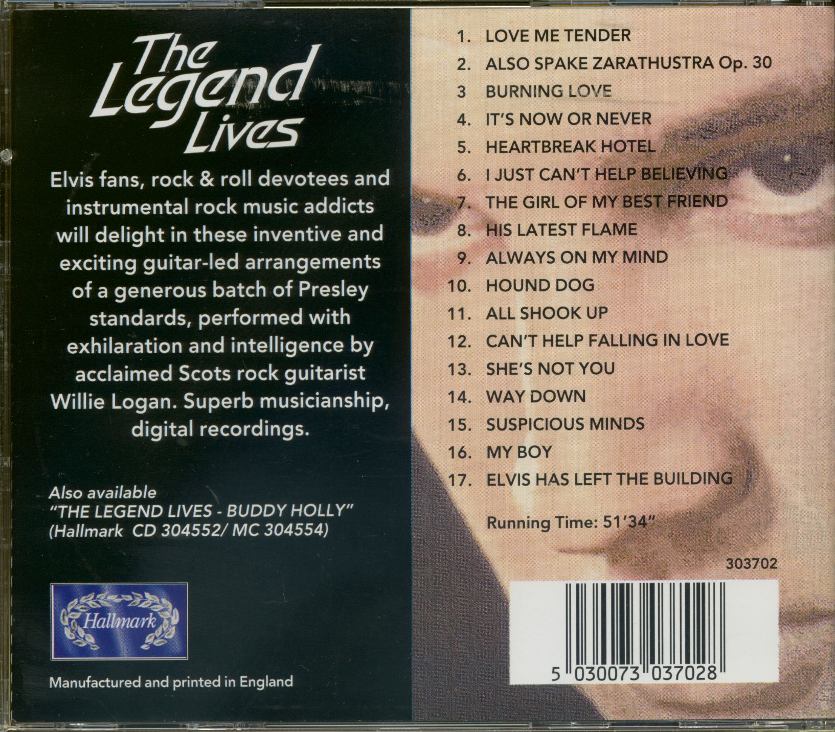 Elvis fans, rock & roll devotees and instrumental rock music addicts will delight in these inventive and exciting guitar-led arrangements of a generous batch of Presley standards, performed with exhilaration and intelligence by acclaimed Scots rock guitarist Willie Logan. Superb musicianship, digital recordings.