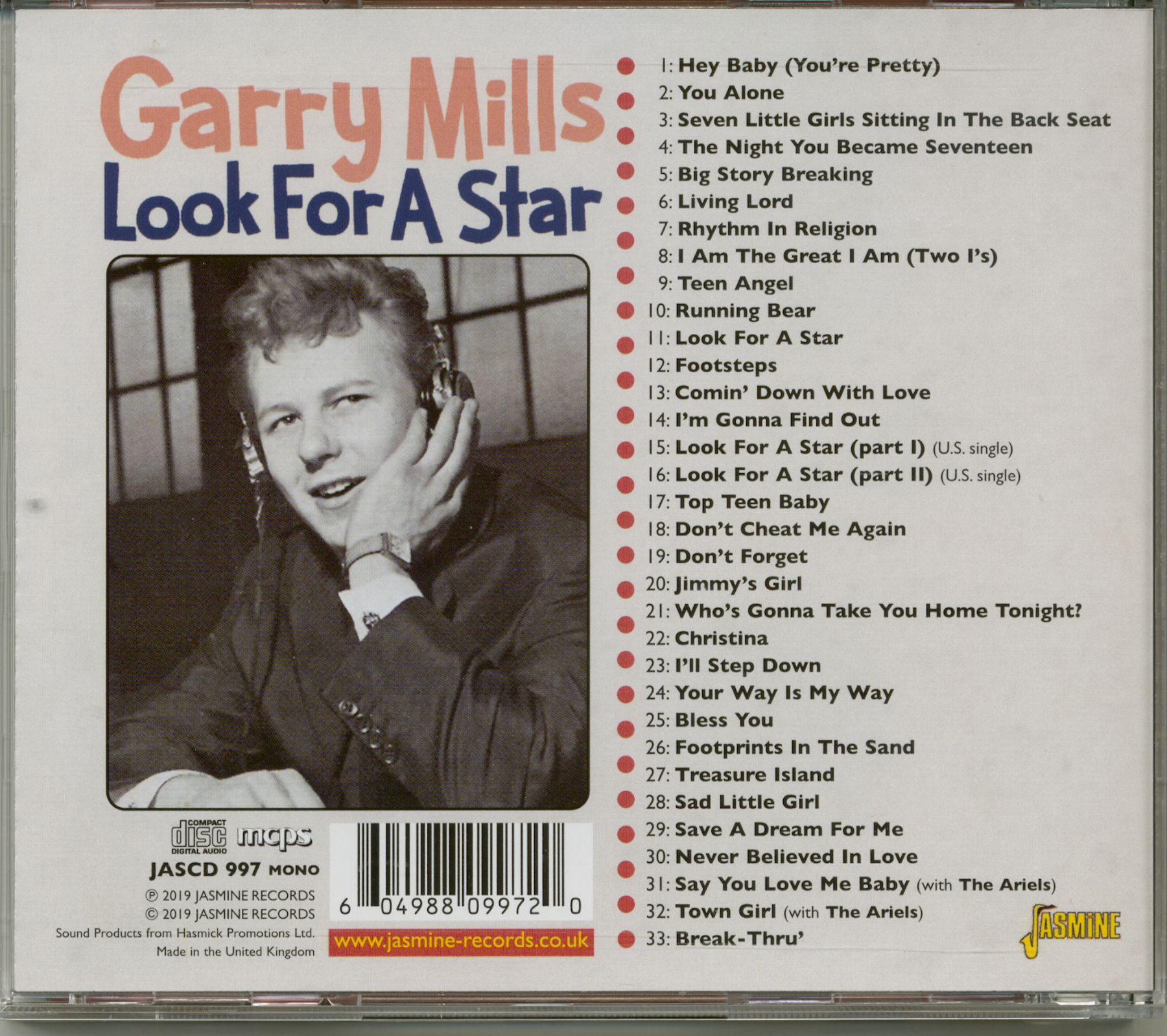 In 1960 Garry Mills landed a worldwide hit with the song Look For A Star, which was also part of the soundtrack of the successful movie Circus Of Horrors with Anton Diffrin, Erika Remberg and Donald Pleasence. This is the very first compilation of Garry recordings. Therefore, most of these tracks are available on CD for the first time.
