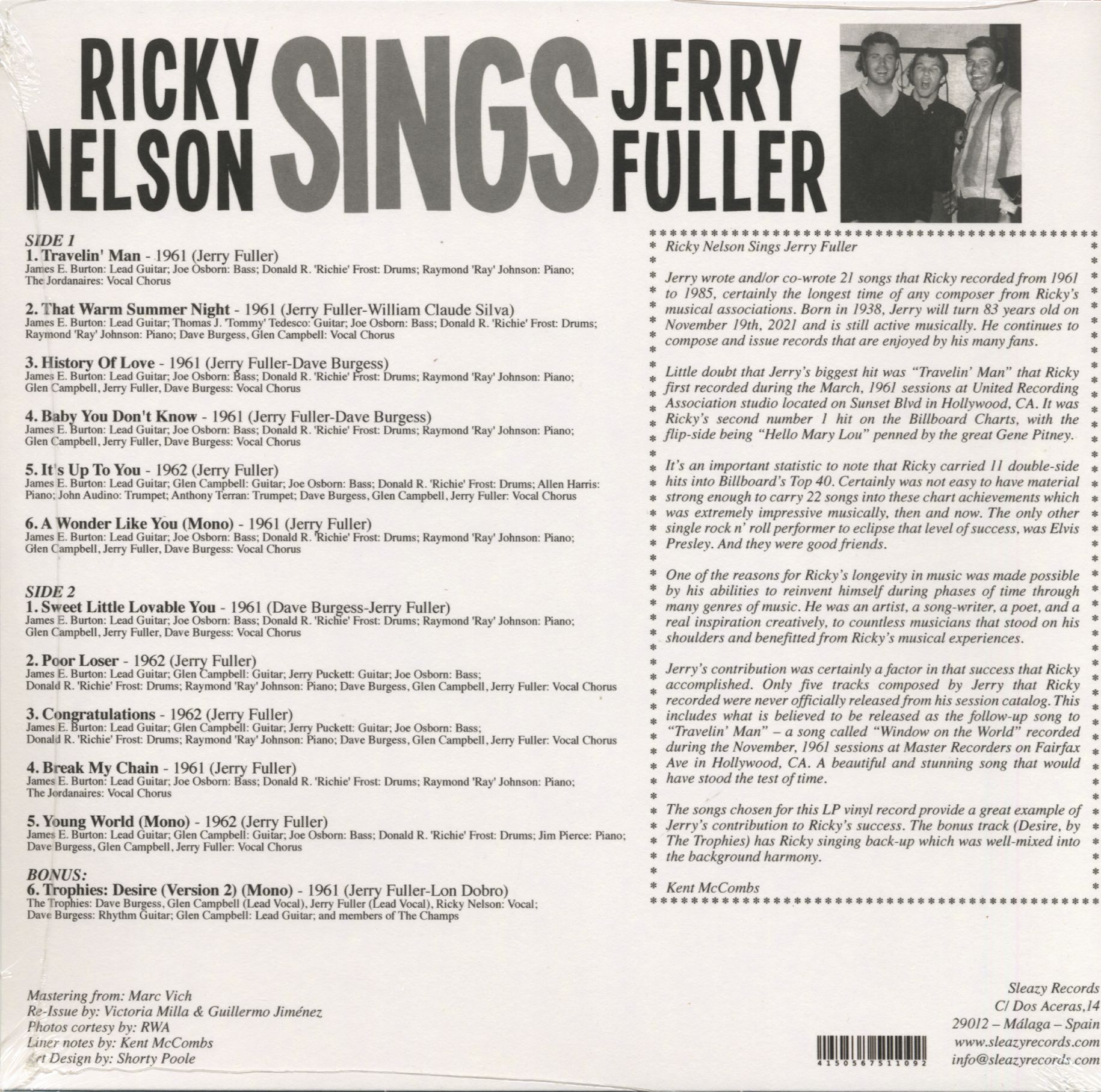 Ricky Nelson Sings Jerry Fuller (LP, 10inch)