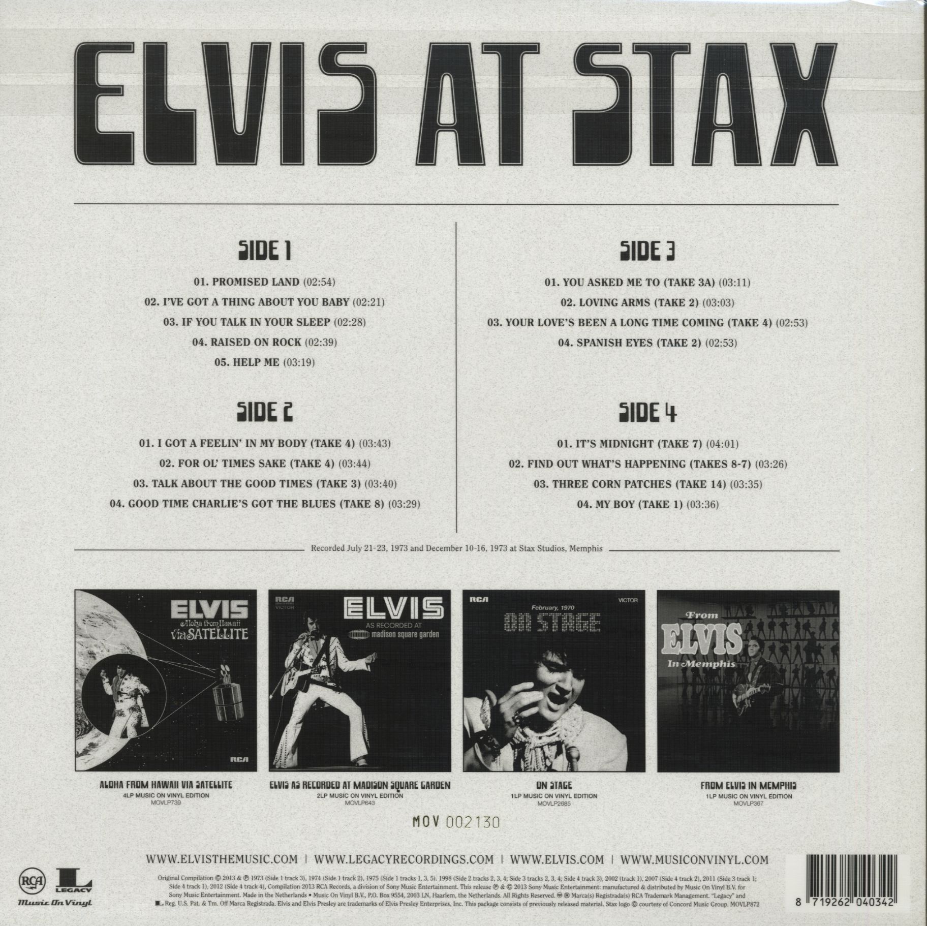 Elvis Presley Elvis At Stax (2-LP, 180g, Colored Viny, Ltd.)