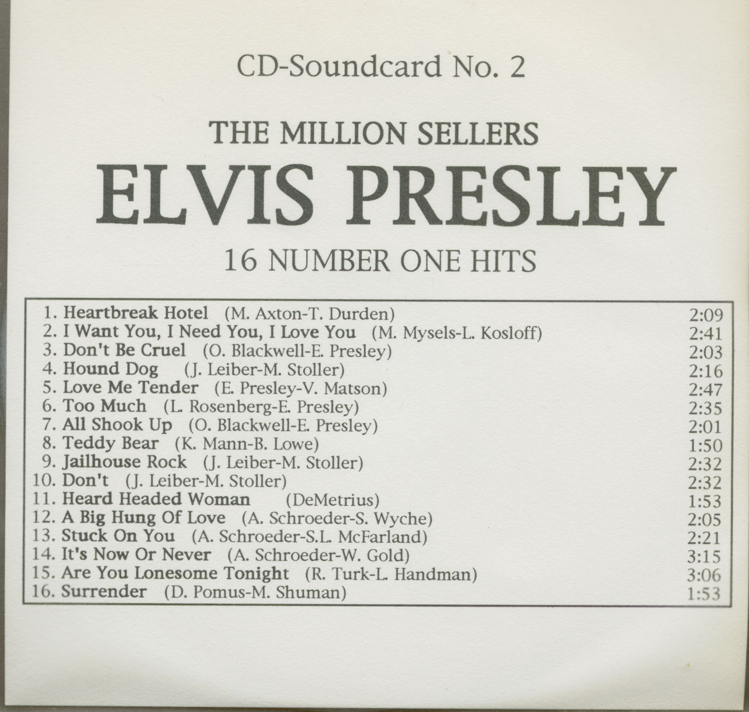 Presley, Elvis The Million Sellers - 16 Number One Hits (CD)