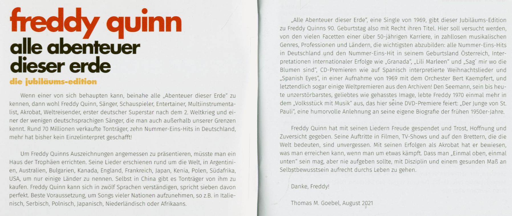 Quinn, Freddy - Alle Abenteuer dieser Erde - Die Jubiläums Edition (2-CD, 1-DVD)