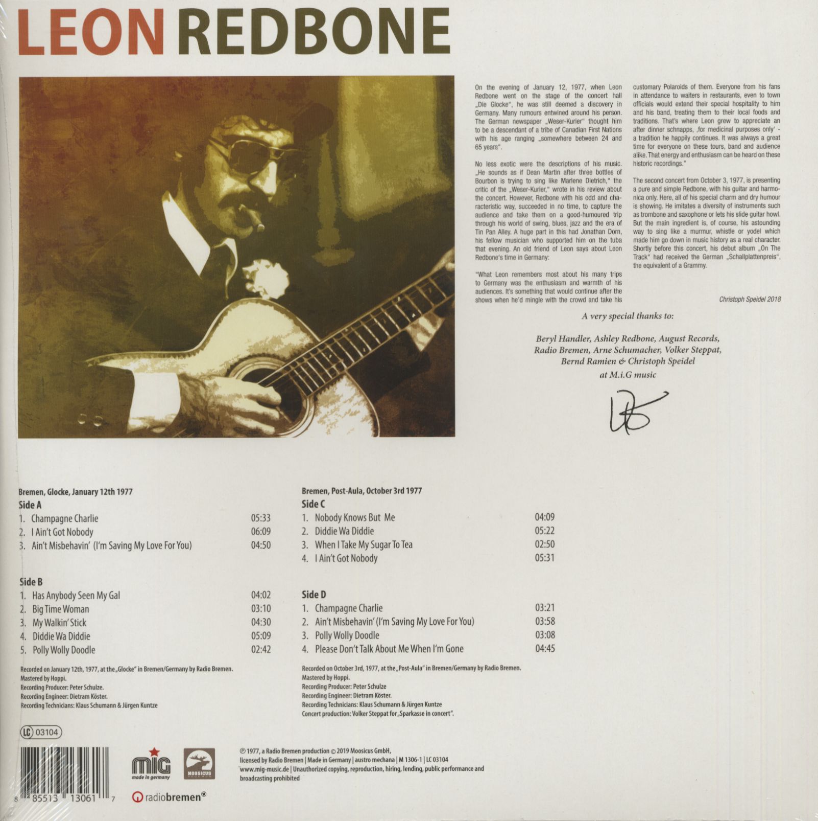| Redbone, Leon - Strings And Jokes - Live In Bremen 1977 (2-LP) LP 1 | ||||