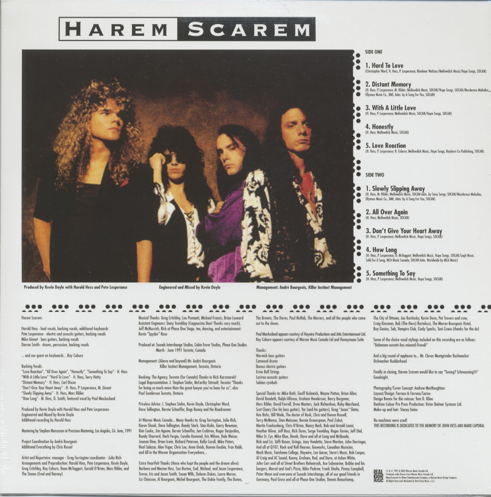 "Harem Scarem" not only featured appearances by Canadian stars Ray Coburn (Honeymoon Suite), Carl Dixon (Coney Hatch) and Ray MacAusland (Haywire), but eight songs from the record also appeared on School's Out, the farewell movie farewell movie of the popular CBC series DeGrassi Junior High (anyone who grew up in Canada in the 90s knows 90s, you know what a big deal that was). And the record had hits with "Slowly Slipping Away," "Honestly" and "Love Reaction."