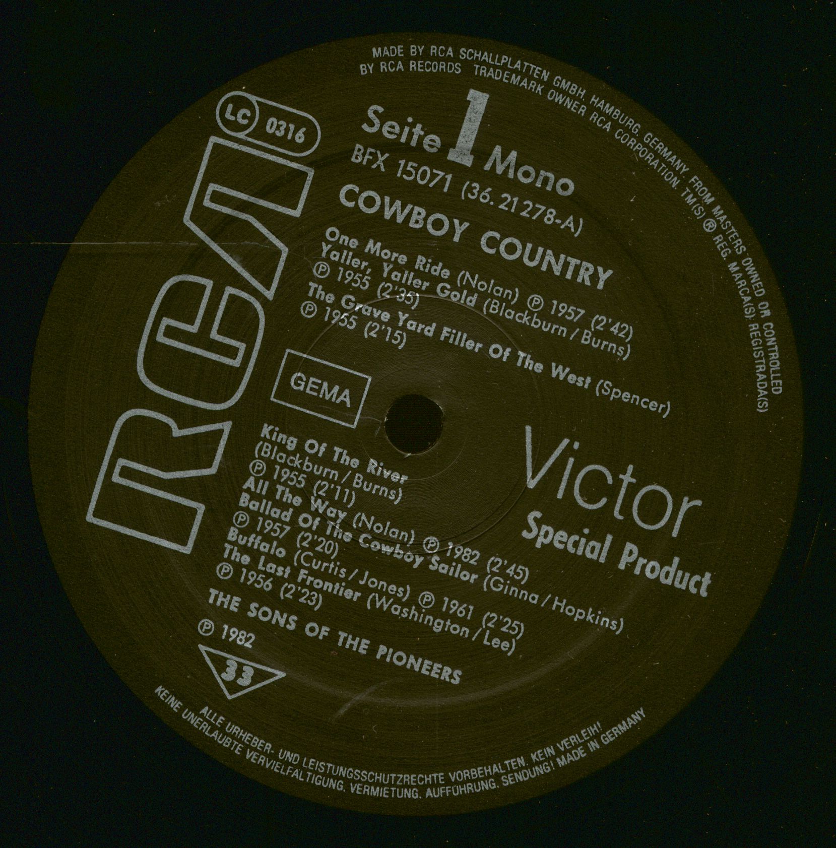 SONS OF THE PIONEERS Cowboy Country (LP)