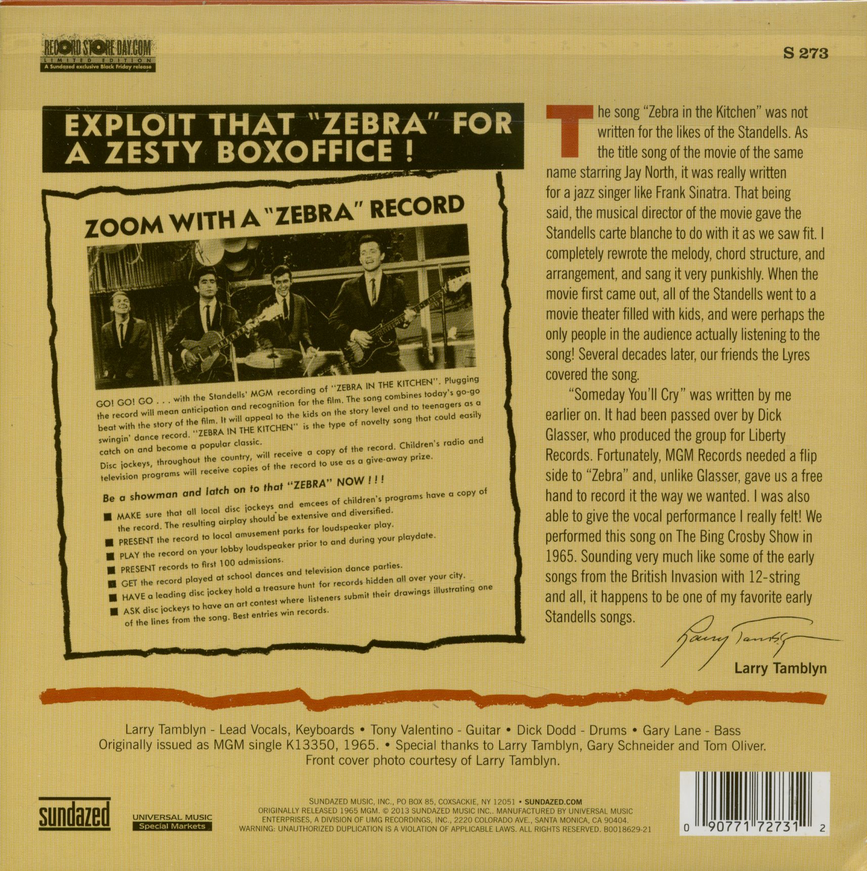 The Standells Zebra in the Kitchen - Someday You'll Cry (7inch, 45rpm, PS)