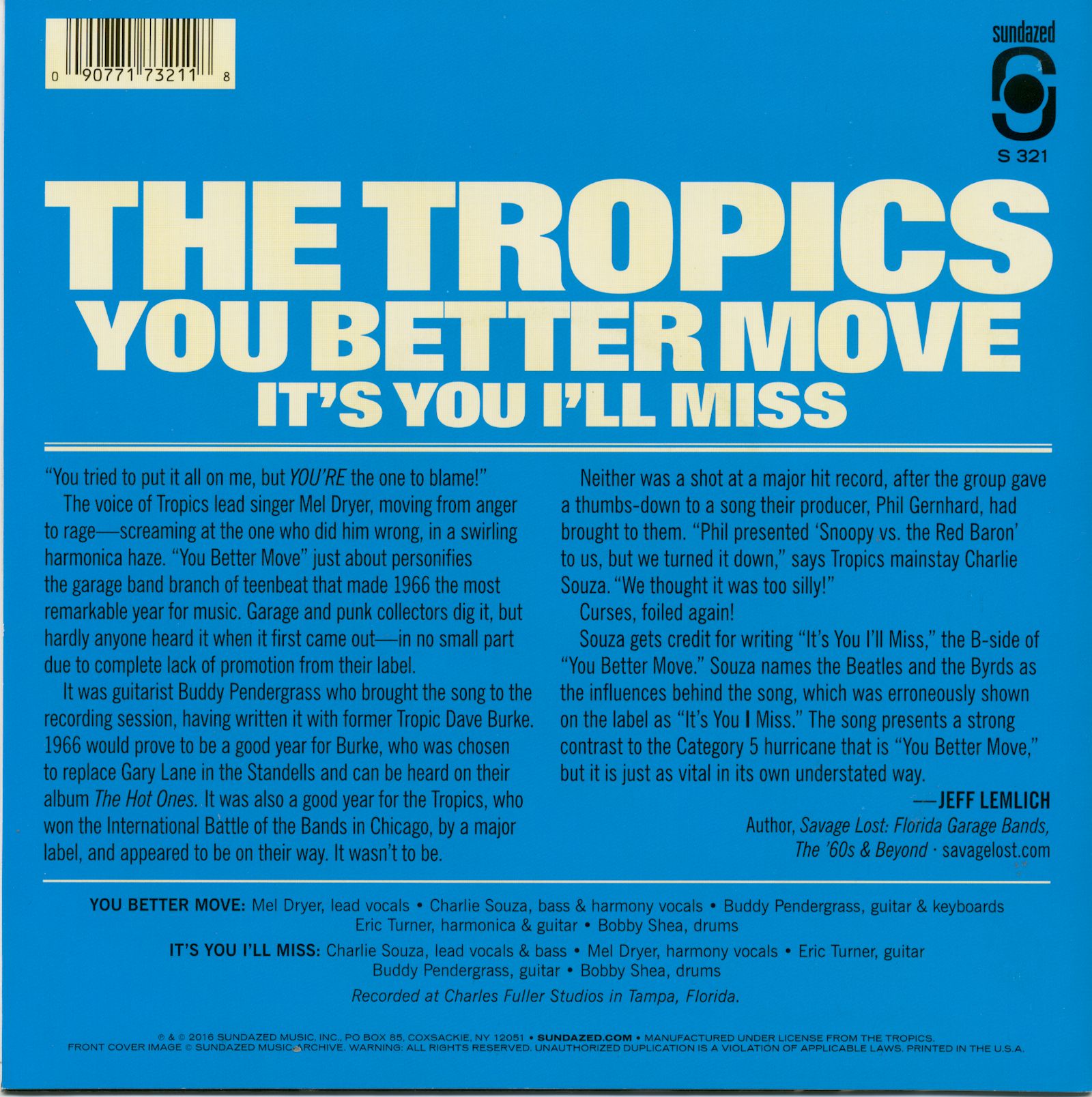 | Tropics, The - You Better Move b-w It's You I'll Miss (7inch, 45rpm, PS, red wax) 7inch 1 | ||||