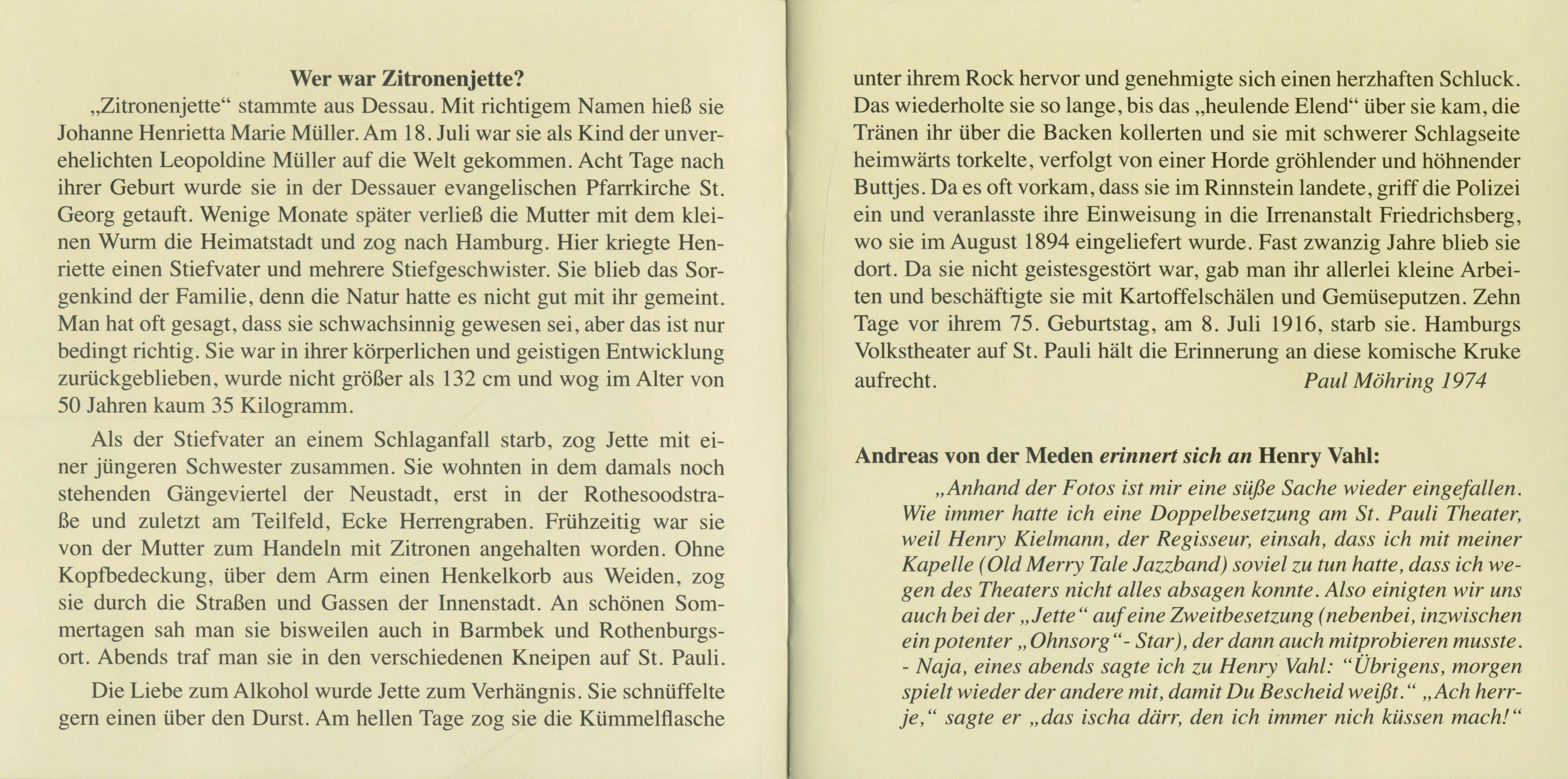 | Vahl, Henry - Zitronenjette - Volksstück mit Musik (CD) CD 1 | ||||