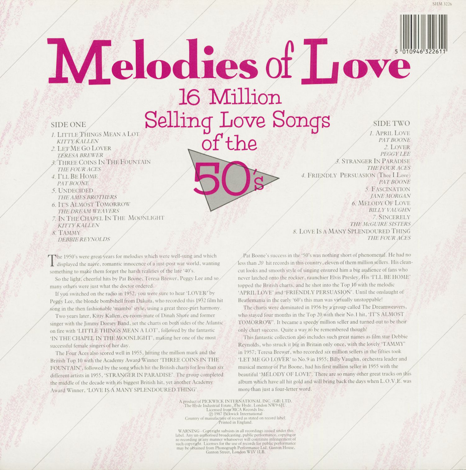 Various Melodies Of Love - 16 Million Selling Love Songs Of The 50s (LP)