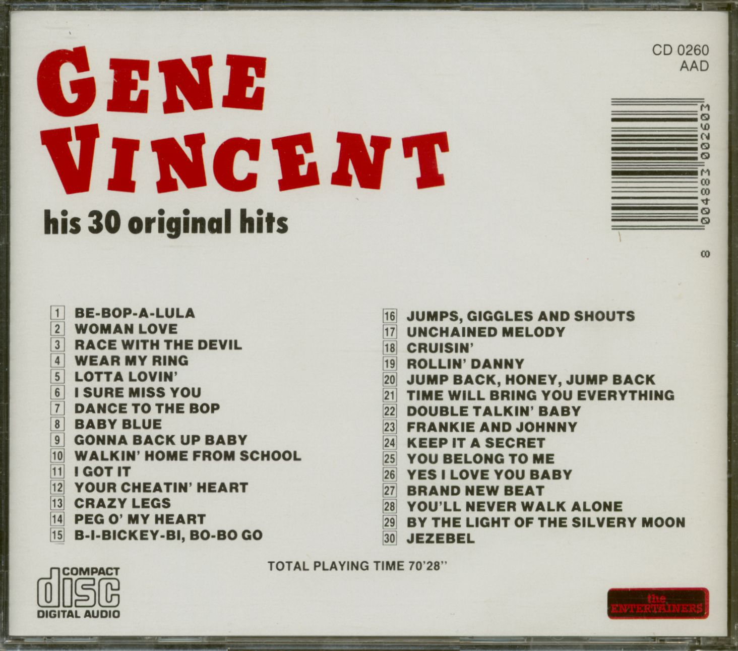 Gene Vincent His 30 Original Hits - Be-Bop A-Luna (CD)