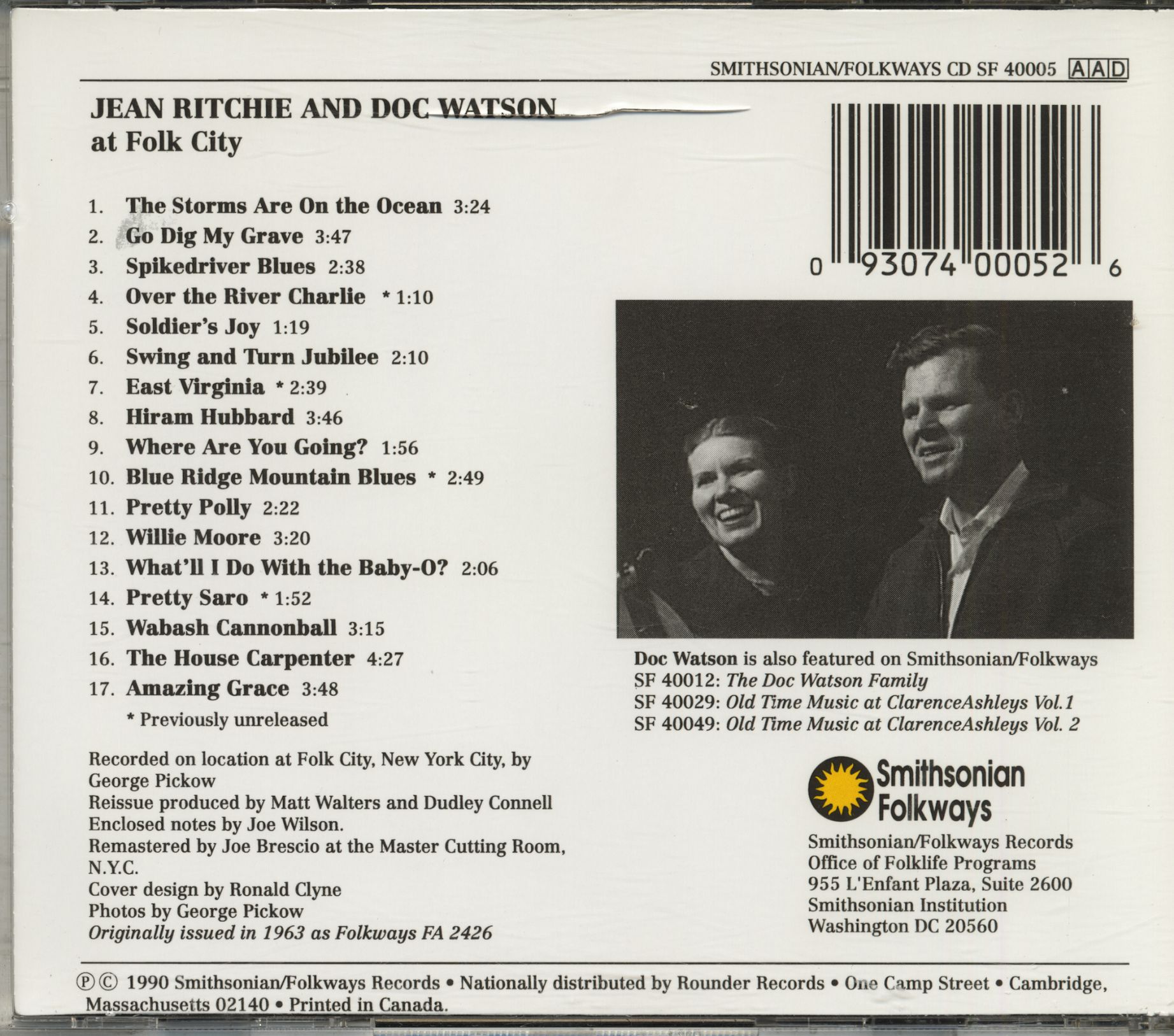 Jean Ritchie And Doc Watson Jean Ritchie And Doc Watson At Folk City (CD)